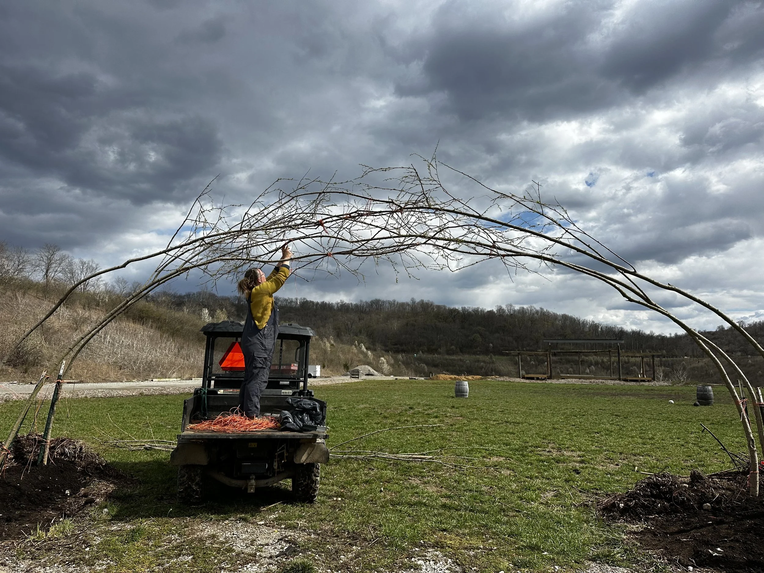 Richard Stewart and Justin Dean of Lost Bridge Beverage Company requested that we will build a willow arch as an entry way to their main stage lawn. This was the final project that Abby Ahrens completed with me as a part of her 2 month willow co-op for University of Cincinnati’s DAAP fine arts program.